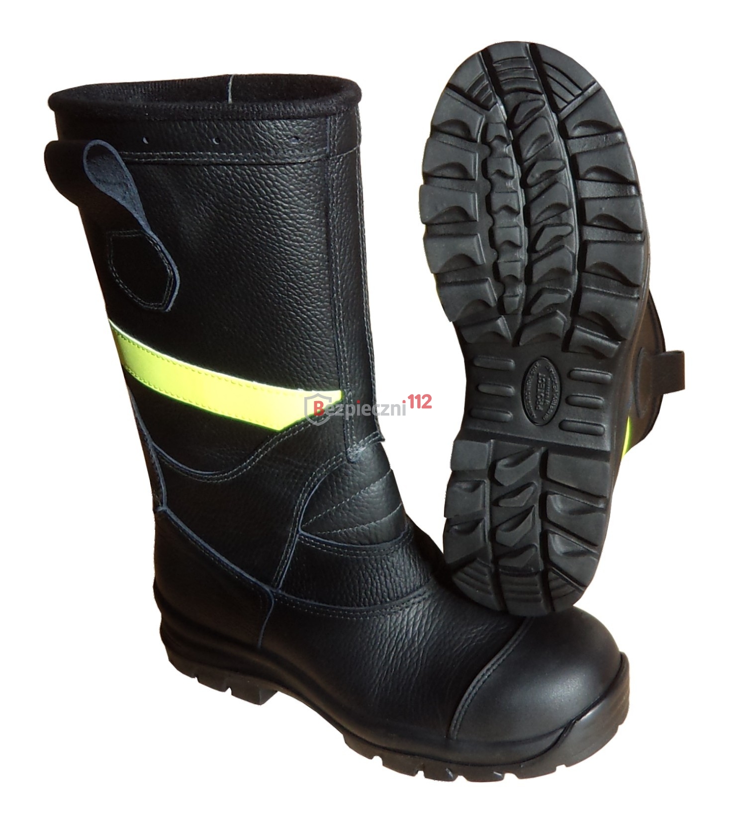 wykonane z czarnej skóry hydrofobowej impregnowanej, wysokiej jakości, o grubości od 2,0 do 2,2 mm, żaroodpornej, a także wodoodpornej przez okres 180 minut