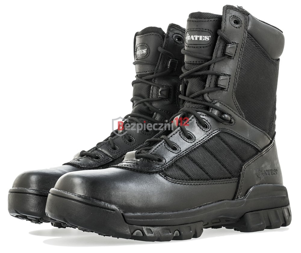 Buty BATES 2261 side-zip to buty zblizone do modelu 2260 wzbogacone o zamek błyskawiczny,znajdujacy się po wewnętnrznej stronie obuwi. Cholewka wykonana jest z wysokiej jakości odpornej na wodę skóry naturalnej oraz nylonu balistycznego dla zwiększenia właściwości oddychających. Wyjmowana wkładka antybakteryjna odpowiada za amortyzację oraz zapewnia higienę wewnątrz obuwia. Konstrukcja buta zapewnia optymalną stabilność stopy i zapobiega jej skręceniom na nierównym terenie. Buty nie posiadają metalowych elementów, dzięki czemu są przyjazne dla elektornicznych środków bezpieczeństwa, różnego rodzaju bramek (np. na lotniskach) oraz wykrywaczy metalu. Aby ułatwić i przyspieszyć zakładanie i zdejmowanie butów zastosowano przelotki samoblokujące z systemem szybkiego wiązania. Podeszwa posiada bardzo dobre właściwości antypoślizgowe, co zwiększa komfort, bezpieczeństwo i parametry ruchowe Użytkownika.