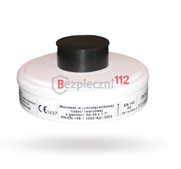 Filtr F 21/80-P3 po skompletowaniu z częścią twarzową wyposażoną w łącznik z gwintem Rd 40x1/7’’ służy do ochrony układu oddechowego przed pyłami, mgłami i aerozolami. Ochrona obejmuje cząstki stałe w postaci pyłów i zawiesin o wysokim stopniu rozdrobnienia, mgły i aerozole cieczy o mikronowych wymiarach cząstek, wszędzie tam gdzie zawartość tlenu w powietrzu wynosi minimum 17% obj. Filtr chroni także przed pyłami, mgłami i aerozolami po obłożeniu 120 mg chlorku sodu oraz 120 mg oleju parafinowego.