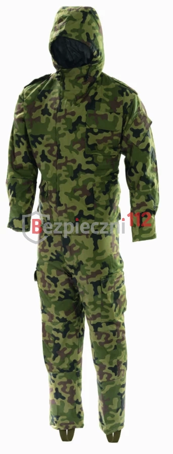 Komplet filtracyjnej odzieży ochronnej składa się z następujących części: ubranie filtracyjne kurtka z kapturem i spodnie, rękawice gumowe, rękawice ocieplające, buty gumowe, torba nośna na buty i rękawice, zasobnik na komplet odzieży.