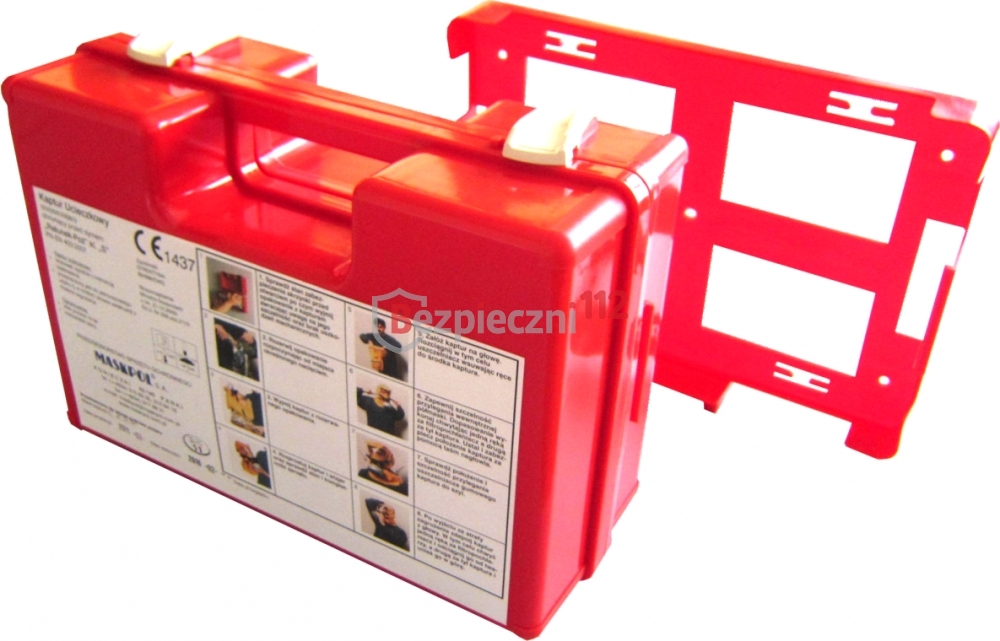Kaptur ucieczkowy „Ratunek-Poż” Klasy „S” przeznaczony jest do ewakuacji z zadymionej strefy w czasie pożaru. Kaptur ucieczkowy jest zaprojektowany w uniwersalnym rozmiarze umożliwiającym jego stosowanie, zarówno przez osoby dorosłe jak również dzieci w wieku od 12 lat. Kaptur ucieczkowy zapewnia duże bezpieczeństwo użytkownika dzięki zastosowaniu wysoko przetworzonych materiałów i najnowszych rozwiązań konstrukcyjnych. Kaptur spełnia wymagania normy PN-EN 403.