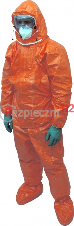 KOMBINEZON IZOLACYJNY KOM-1 wykonany jest z lekkiego i bardzo wytrzymałego materiału barierowego Tychem - Typ "F" w kolorze pomarańczowym, tj. z unikalnej, polietylenowej włókniny, odpornej na działanie wody, paliw, smarów, chemikaliów i krótkotrwałe działanie płomienia. KOMBINEZON IZOLACYJNY KOM-1 zapewnia: