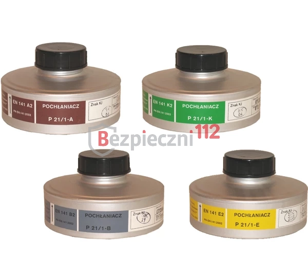 Pochłaniacze P 21/1–A, B, E, K, są wymiennymi elementami oczyszczającymi, które po skompletowaniu z częścią twarzową wyposażoną w standardowy łącznik gwintowy Rd 40×1/7” służą do ochrony układu oddechowego przed substancjami określonymi w tabeli. Czas użytkowania pochłaniaczy ograniczony jest progiem zapachowym tj. stężeniem substancji nie przekraczającym wartości NDS wyczuwanym przez użytkownika, wzrostem oporu oddychania lub złego samopoczucia.