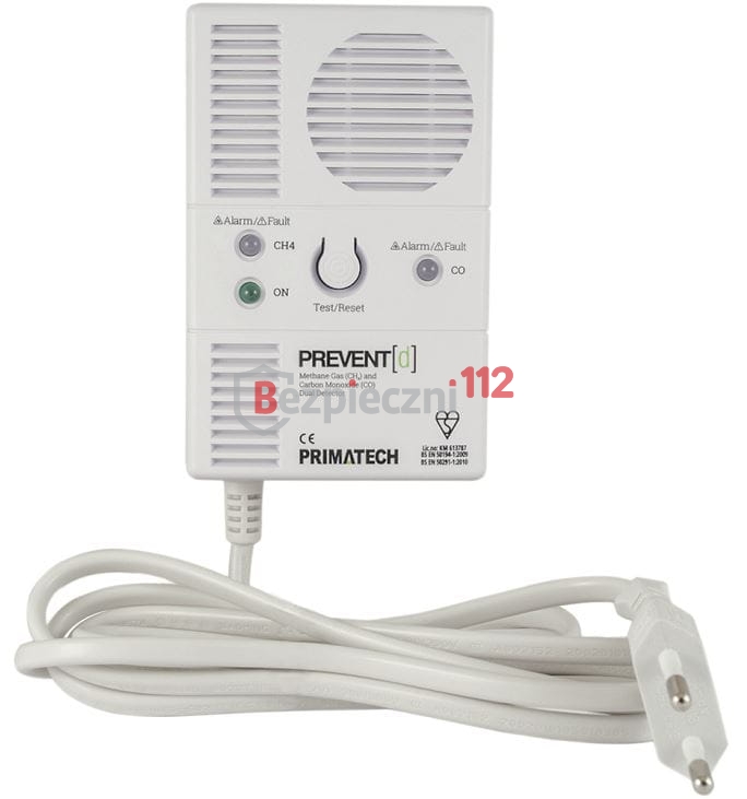 PREVENT [D] dualny czujnik przeznaczony do monitorowania pomieszczeń pod kątem występowania w nich tlenku węgla oraz gazu ziemnego (LNG, metanu). Posiada dwa niezależne sensory umieszczone w jednej obudowie.