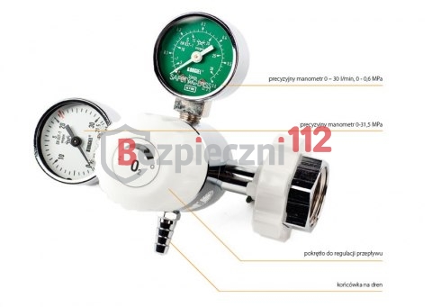 zakres wskazań manometru - 0 - 31,5 MPa oraz 0 - 30 l/min, 0 - 0,6 MPa