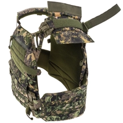 Cała powierzchnia zewnętrzna kamizelki pokryta laserowo wycinanym systemem MOLLE pozwalającym na montaż oporządzenia według indywidualnych preferencji i potrzeb użytkownika. Panele wewnętrzne pokryte profilowaną pianką dystansową, poprawiającą cyrkulację powietrza pod kamizelką. Przystosowana do przenoszenia miękkich i twardych wkładów balistycznych typu SAPI w rozmiarach S, M, L. Dzięki zastosowanym w środku poszycia pasom, tzw. windzie, płyty o różnych wymiarach stabilnie układają się wewnątrz kamizelki. Opcjonalnie, dzięki zastosowanym kieszeniom kamizelkę można doposażyć w dwa boczne wkłady twarde. W zależności od potencjalnych zagrożeń, kamizelka może zostać dodatkowo rozbudowana o osłony ramion, podbrzusza i dolnej części kręgosłupa oraz kołnierz balistyczny.