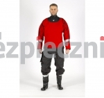 Wykonany z tkaniny zasadniczej: w kolorze czarnym nylon laminowany od spodu poliurethanem, dodatkowo tkanina wzmacniająca cordura z w kolorze czerwonym w części górnej skafandra dla wersji Basic oraz dla całości skafandra w wersji Advanced, posiada kryzę szyjną lateksową + kołnierz neoprenowy zapinany na rzep,zamek wejściowy gazoszczelny plastikowy YKK na plecach przykryty patką zamykaną na rzep, rękawy zakończone „chlapaczami” z zamkiem plastikowym oraz wklejonymi
