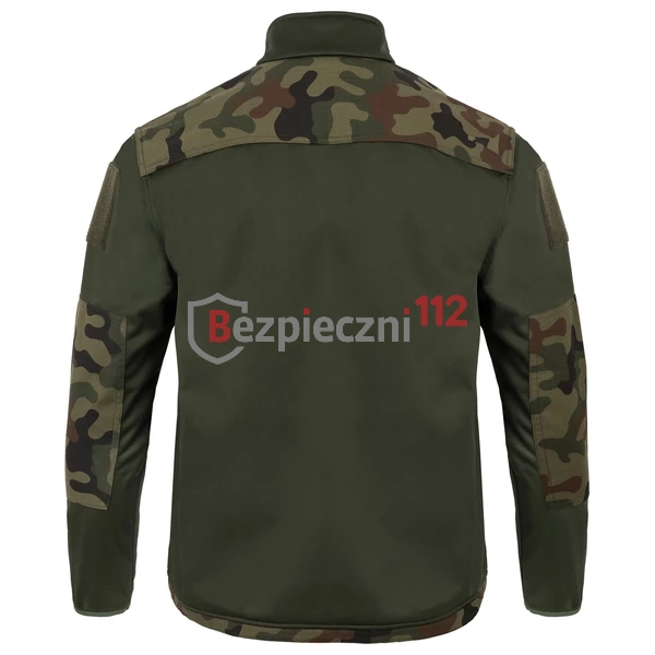 Ramiona oraz łokcie rękawów zostały wzmocnione dodatkową warstwą materiału, zwiększającą trwałość softshella, a mankiety zakończono elastyczną taśmą-lamówką.