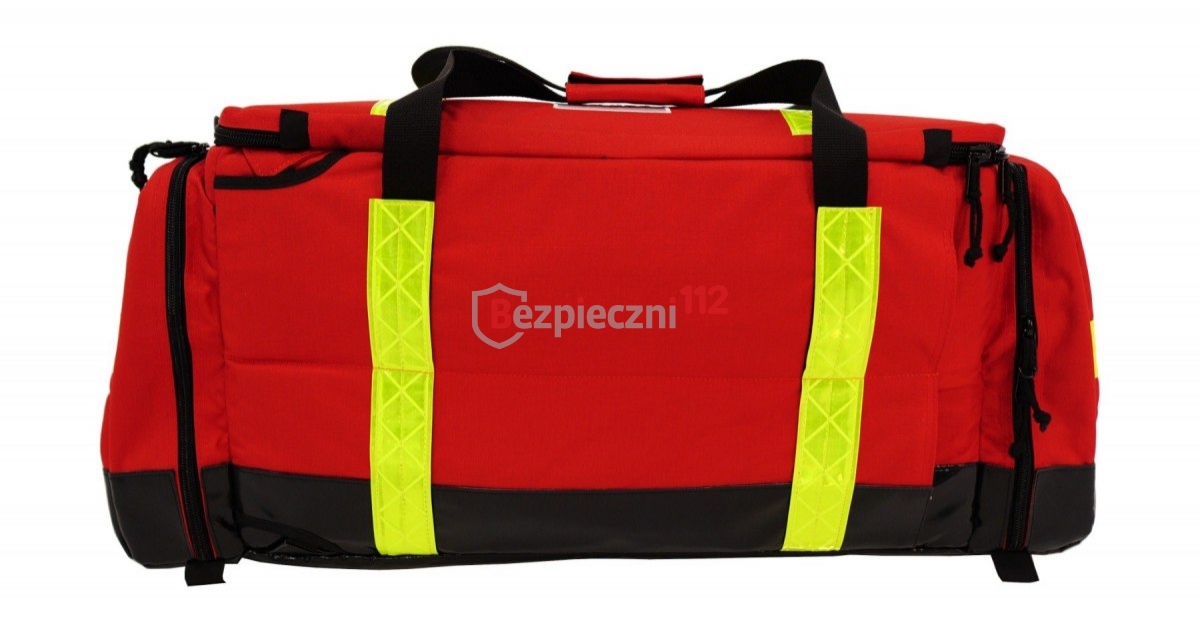 - komora główna z opiankowaną osłoną na butlę tlenową, czterema pojemnymi kieszeniami materiałowymi i dwoma kieszonkami siatkowymi na klapie górnej. Dodatkowo, w środku znajdują się dwa pokrowce na resuscytatory i materiały opatrunkowe