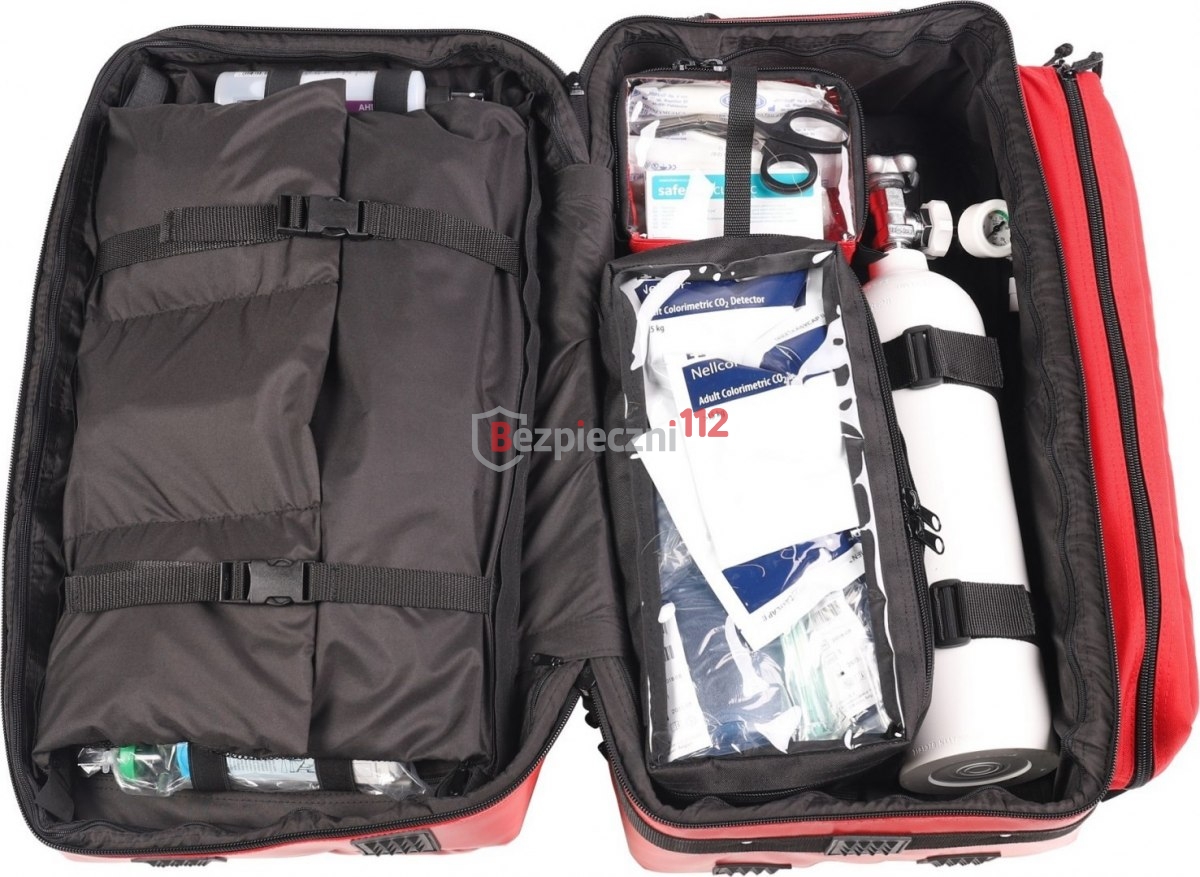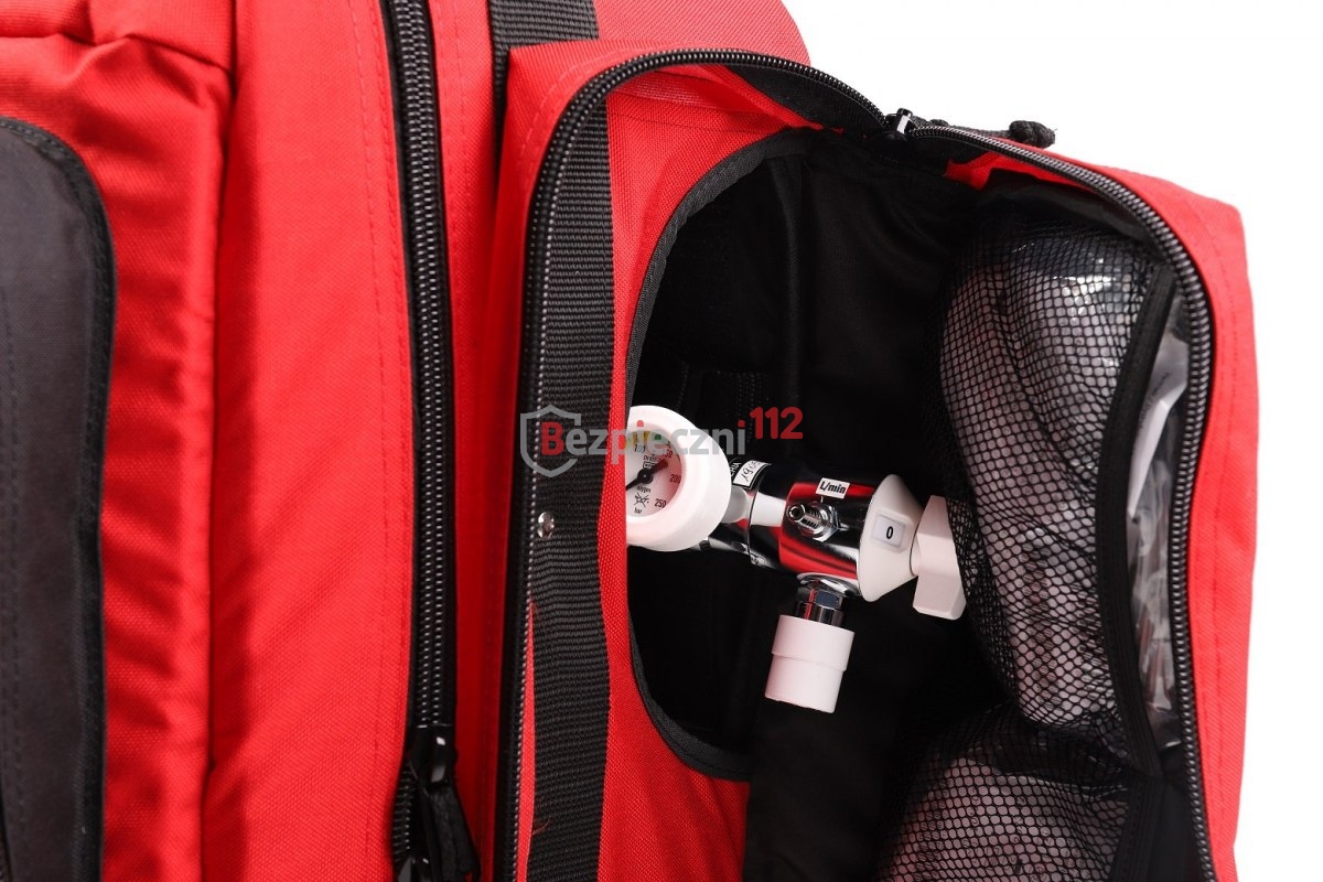 - na wyposażeniu plecaka dodatkowy pokrowiec na resuscytatory oraz saszetka na materiały opatrunkowe.